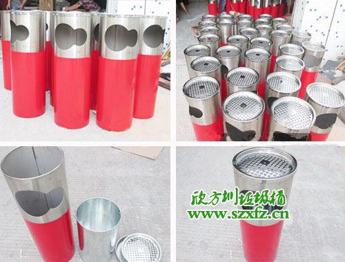 該款不銹鋼垃圾桶的規(guī)格為:250*700mm,垃圾桶是嚴(yán)格按照樣板的質(zhì)量和顏色來(lái)生產(chǎn)的。不銹鋼垃圾桶是可以拆開(kāi),上桶與下桶現(xiàn)結(jié)合。整桶圓形狀,上桶頂部有投放煙頭,滅火隔離。不銹鋼上桶表面是不銹鋼砂鋼色,有兩個(gè)圓形組合的投放物口。不銹鋼垃圾桶下桶在原有的色彩上面,采用了噴塑工藝,用中國(guó)傳統(tǒng)顏色大紅色來(lái)襯托。整款不銹鋼垃圾桶設(shè)計(jì)簡(jiǎn)單,外觀美觀,簡(jiǎn)約大方不失本色。