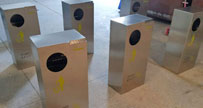 這是欣方圳為廣州高校生產的C383-2不銹鋼單面投放分類垃圾桶,尺寸規(guī)格為1000*400*1000mm,采用足1.0厚304#優(yōu)質不銹鋼材料焊接成型,中間橫梁起到滅煙功能和做煙灰...