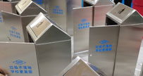 欣方圳不銹鋼搖晃推蓋投口垃圾桶批量生產(chǎn)圖