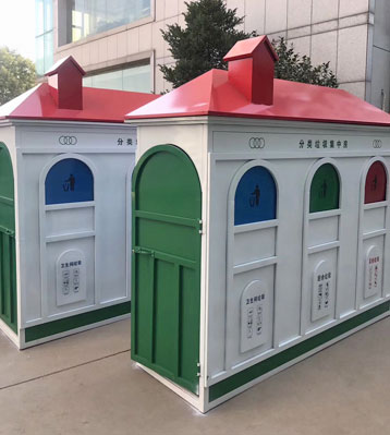 大容量社區(qū)垃圾桶垃圾收集站精致別墅造型桶身圖