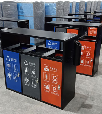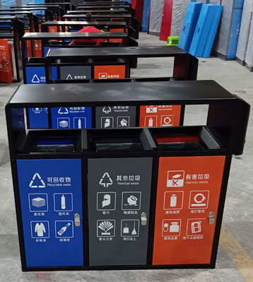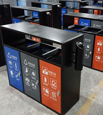 欣方圳戶外三分類垃圾桶工廠批量生產(chǎn)圖