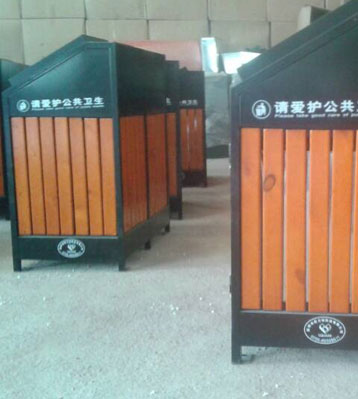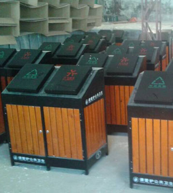 欣方圳戶外廣場鋼木分類垃圾桶原材料